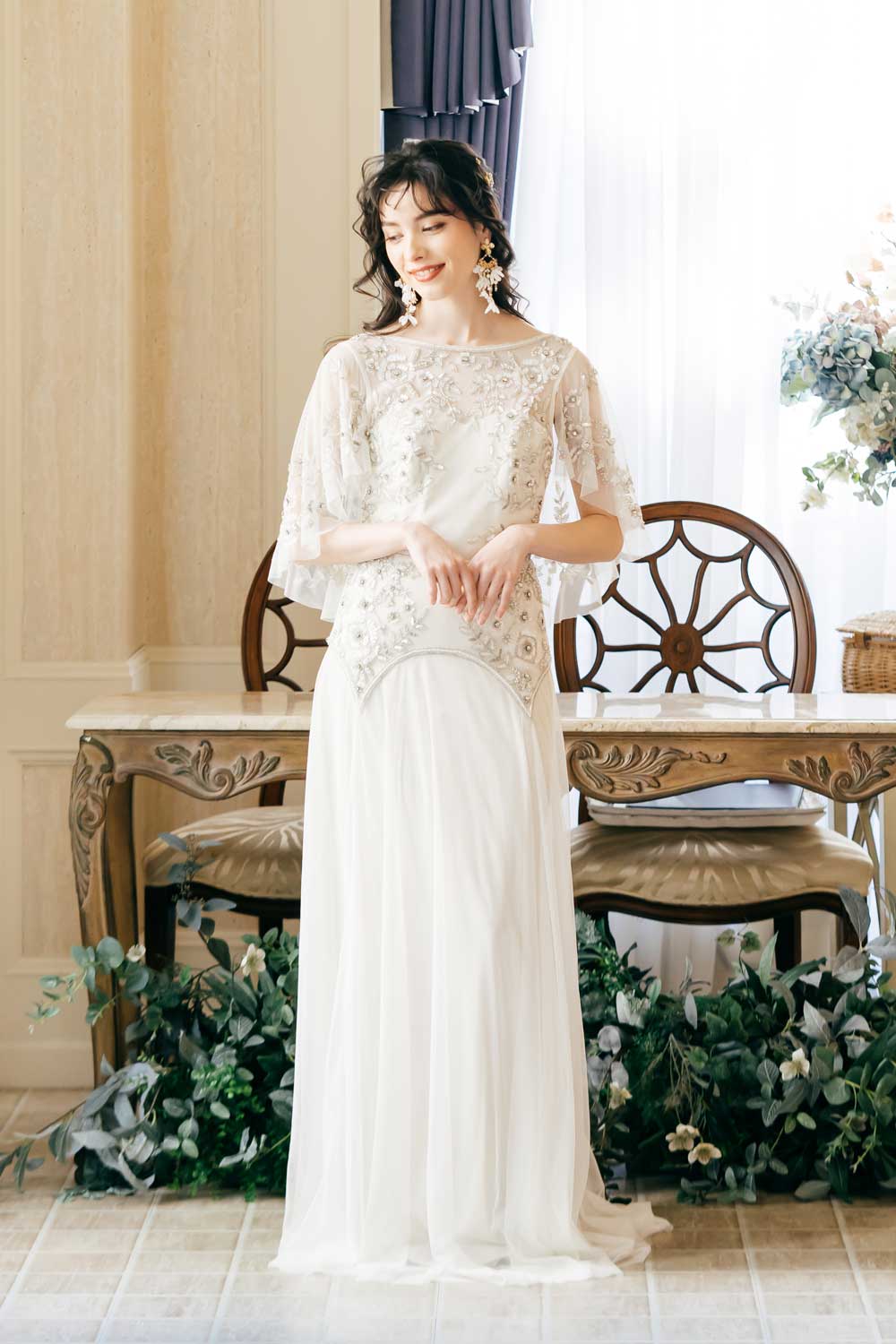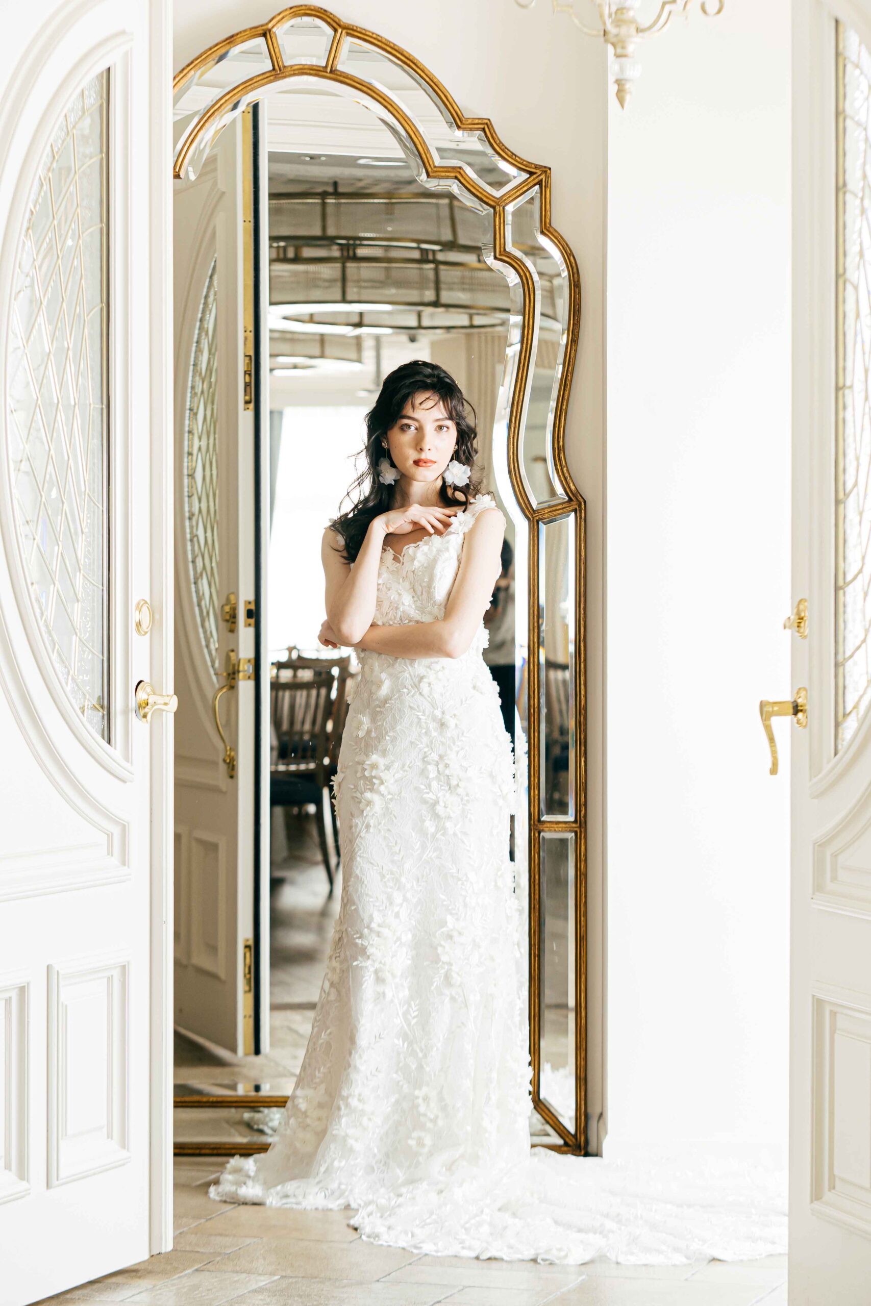 レースやアートワークは、永遠の美に溢れるパリの邸宅や建築、アートからインスパイア。少人数婚やフォトウェディングとしても対応しているドレスコレクションになります。