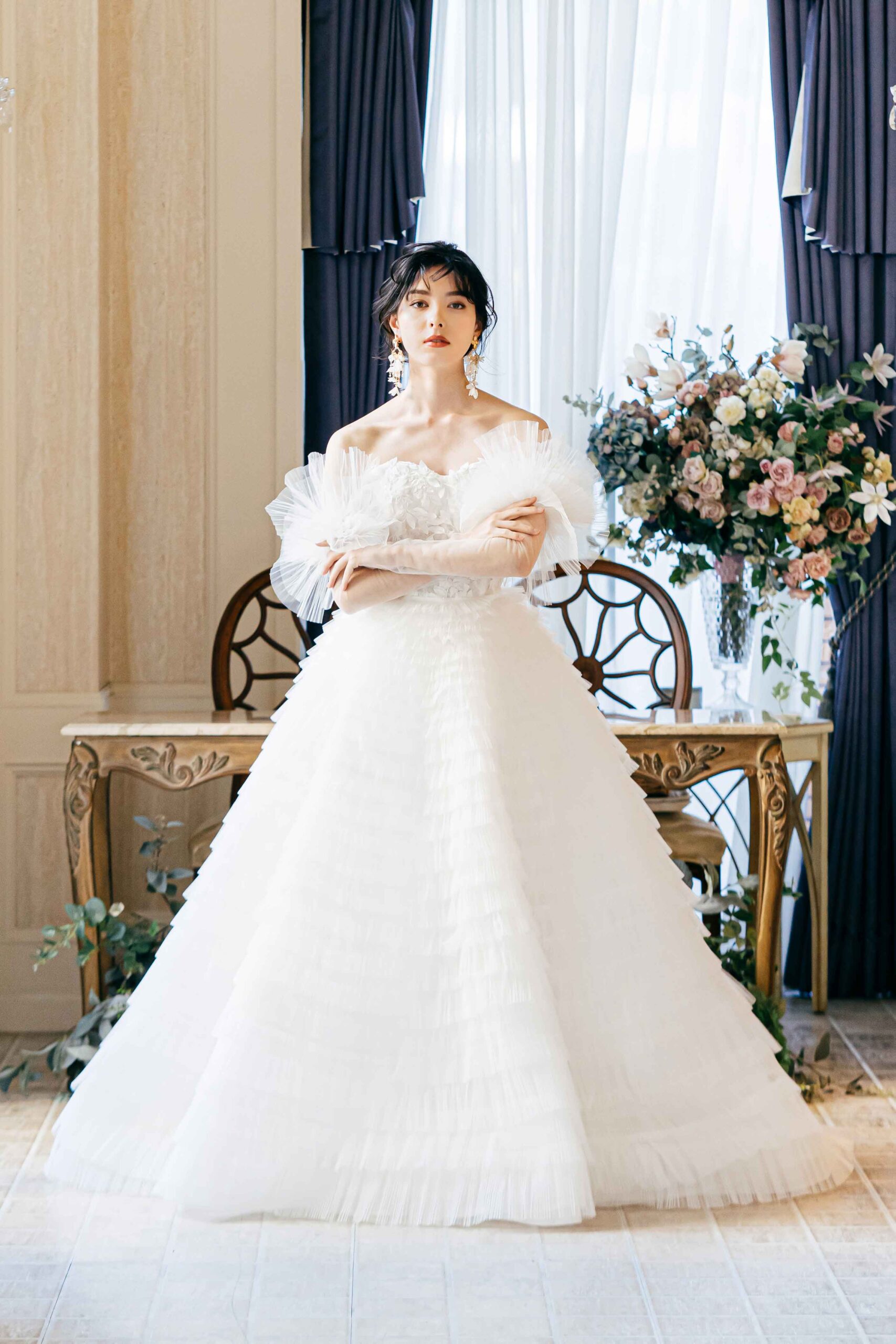 フレンチシックをテーマにパリジェンヌの自由で大胆、そして洗練された花嫁がイメージ。